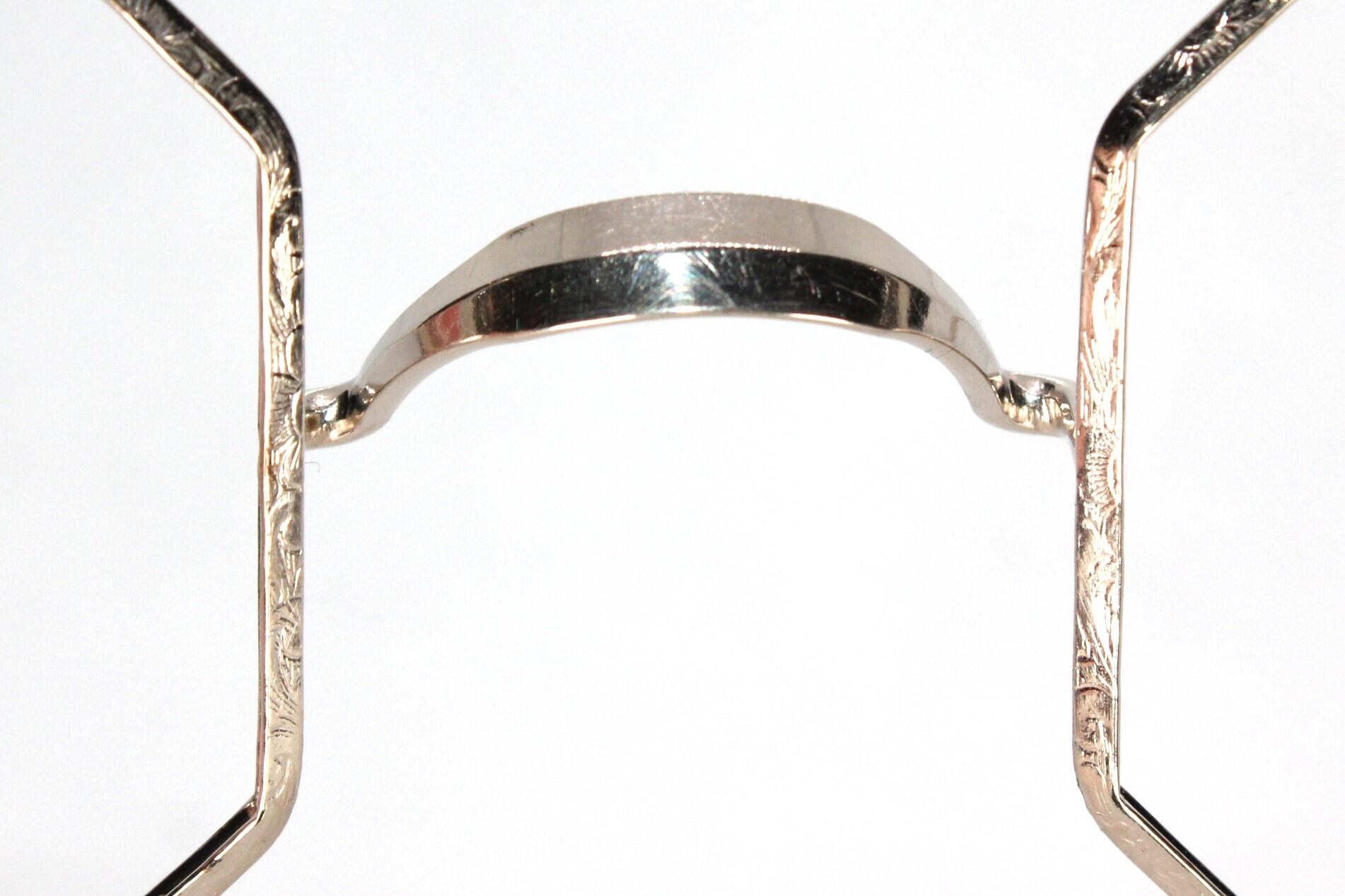 特徴 :貴重なオクタゴン(8角形)のフレームです。リムは△の断面をしており、手彫りの彫金はが他では見ることができないデザインとなっています。
